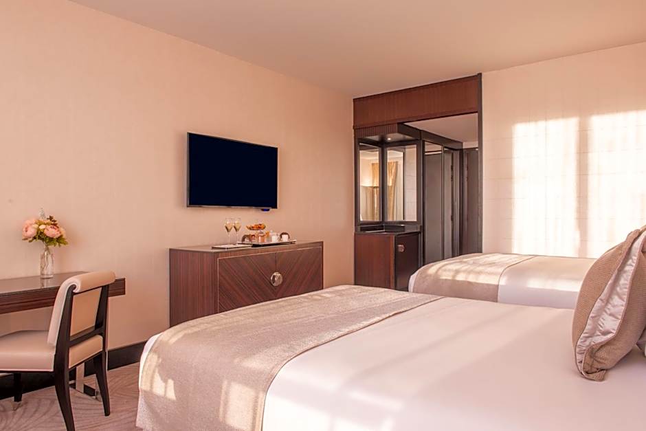 Stap in een stijlvol Parijse toevluchtsoord waar modern comfort klassieke charme ontmoet. Opmerkelijke wellnessopties zijn onder meer een spa-bad, sauna en jacuzzi, perfect om te ontspannen na een dag verkennen. Een goed uitgerust fitnesscentrum houdt de vaart erin, en gratis wifi plus roomservice zorgen voor gemakkelijke avonden binnen of buiten. Een gratis pendelbus helpt bij het navigeren door de stad, terwijl de centrale ligging chique buurten en iconische bezienswaardigheden binnen handbereik plaatst.